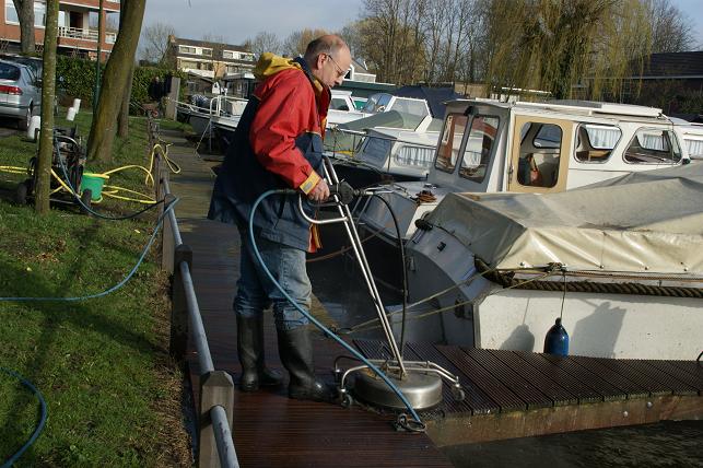 Aan de ene kant van de haven werden de steigers grondig schoongemaakt en werd overtollig groen aangepakt....