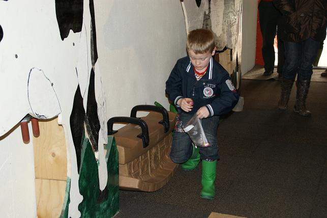 Zo’n 27 kinderen met ouders hadden zich verzameld op de boerderij. Even na 12:00 uur mochten de kinderen meelopen naar de schuur, binnen in de activiteitenruimte waren de paaseieren verstopt. Om de kinderen alle ruimte te geven bij hun speurtocht mochten de ouders pas later naar binnen.