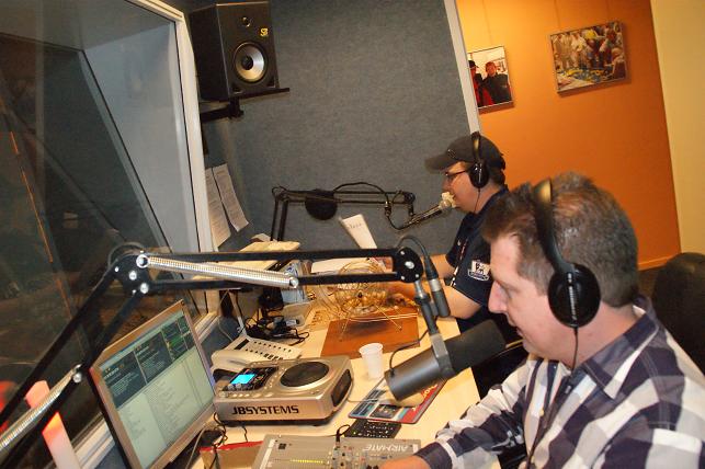 De radiomakers Edwin Tollenaar en Dennis Boele (ondersteund door de dames van het telefoonteam) maakten er een geslaagde uitzending van.