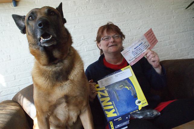 Een trotse winnares van de Marathon Radiobingo uit Linschoten. Zij kreeg live in de uitzending haar prijs uitgereikt.