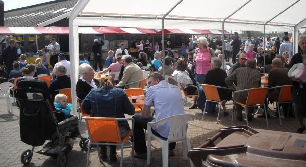 In de kramen waren bijzondere dingen te koop, maar ook de inwendige mens werd niet vergeten. De Amerikaanse veiling bracht vele geïnteresseerden op de been, die leuk meeboden op de artikelen. De opbrengst komt in de spaarpot voor een te realiseren pastorie.