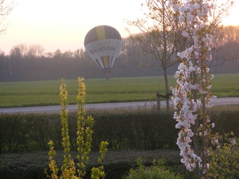 Daar komt de ballon.