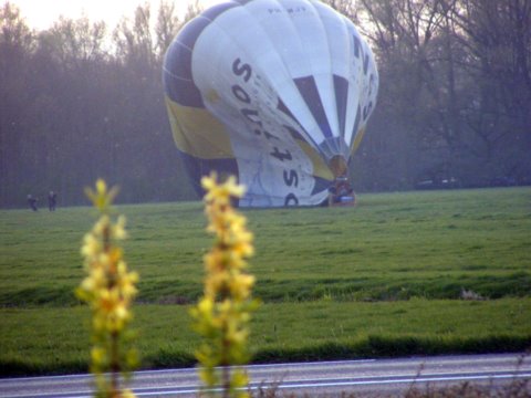 Het ballonvaartseizoen is weer begonnen. In het land van de familie Doornenbal te Linschoten landde zaterdagavond een heteluchtballon. Linschotenaar Cor Verschuur maakte hier enkele mooie foto's van.