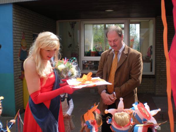 Geplaatst op:28-04-2010 Bijgewerkt op:29-04-2010 10:17 Prinses Maxima bezocht peuterspeelzaal ’t Lodewijkje in MontfoortBron: Monique van den Brink, Leidster op de peuterspeelzaal26 april is "Prinses Maxima" op peuterspeelzaal ’t Lodewijkje geweest. Zij kwam samen met Rob Jonkers om het vernieuwde pedagogisch beleidsplan in ontvangst nemen. Eind 2009/begin 2010 is het pedagogisch beleidsplan van Peuterspeelzaal 't Lodewijkje in Montfoort geheel vernieuwd ter tafel gekomen. Waarom heeft de speelzaal een pedagogisch beleidsplan? De speelzaal wil hiermee haar visie, kwaliteit en professionaliteit vastleggen. Het beleidsplan bestaat uit drie delen: organisatie en geschiedenis, het pedagogisch beleidsplan en het werkplan, waarin de dagelijkse gang van zaken o.b.v. het pedagogisch beleid staat weergegeven. Het wordt veelvuldig gebruikt voor het inwerken van stagiaires, eventuele nieuwe leidsters, dient als naslag voor instanties en ligt tevens ter inzage op de speelzaal voor iedereen die geïnteresseerd is. Maar waarom is het dan herschreven? Tijden veranderen en bepaalde zaken wijzigen door de jaren heen. Met deze hernieuwde versie kan ouders, nieuwe leidsters, instanties en andere geïnteresseerden actuele informatie worden gegeven ten aanzien van de werkwijze op de speelzaal en de fundamenten daarvan. Het beleidsplan waarborgt de deskundige betrokkenheid van het team van leidsters en de organisatie van de speelzaal.