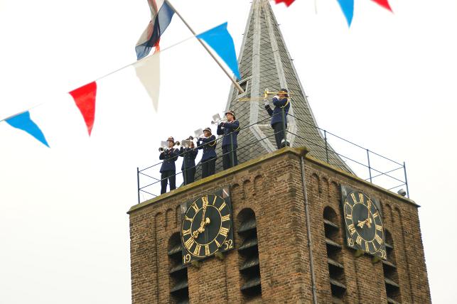 Om 08:00 uur stonden enkele leden van Linfano op de kerktoren om de reveille te blazen. Vervolgens vond de feestelijke opening van Koninginnedag plaats bij het bordes van 'Het Wapen van Linschoten en Snelrewaard'.