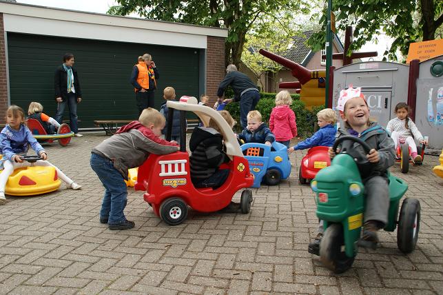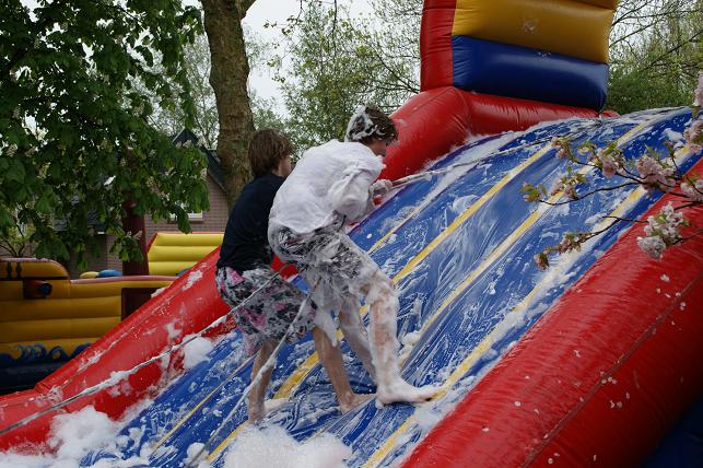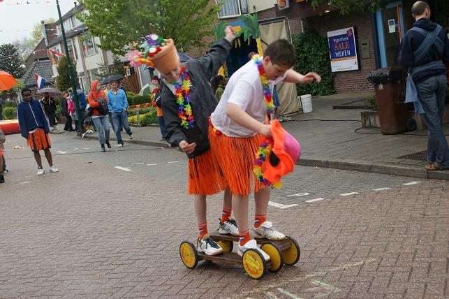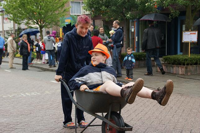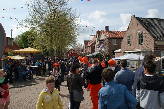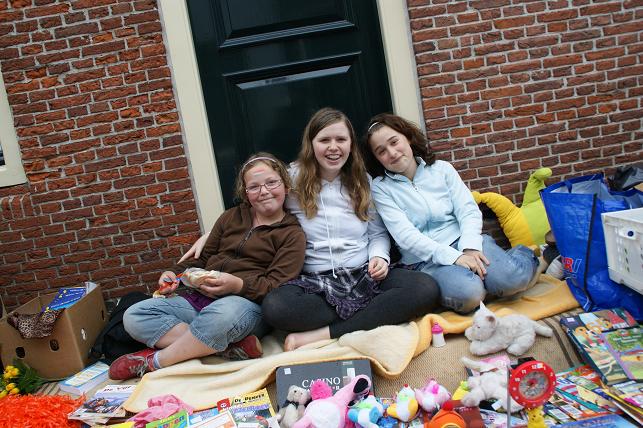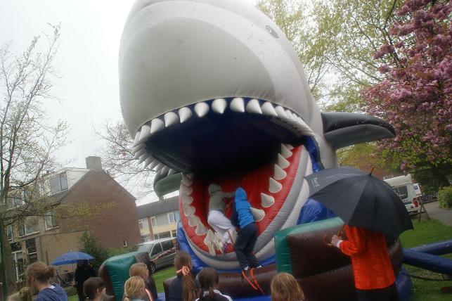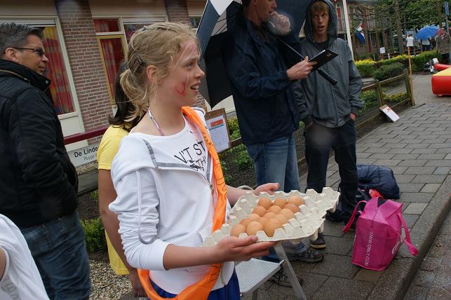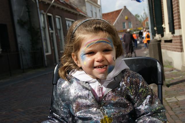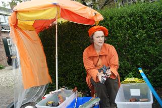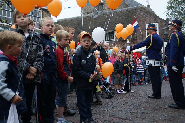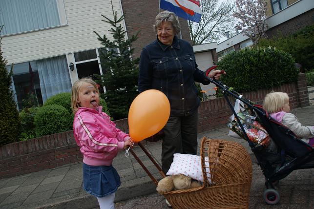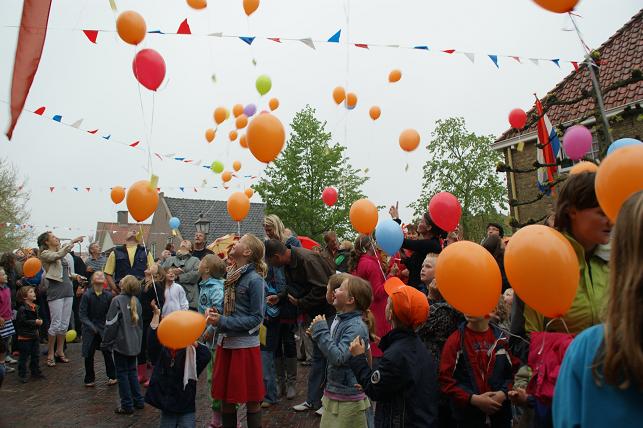...en een hoera voor de koningin en dit 4-jarige meisje dat ook jarig is, werden de ballonnen opgelaten en konden de vele activiteiten beginnen.