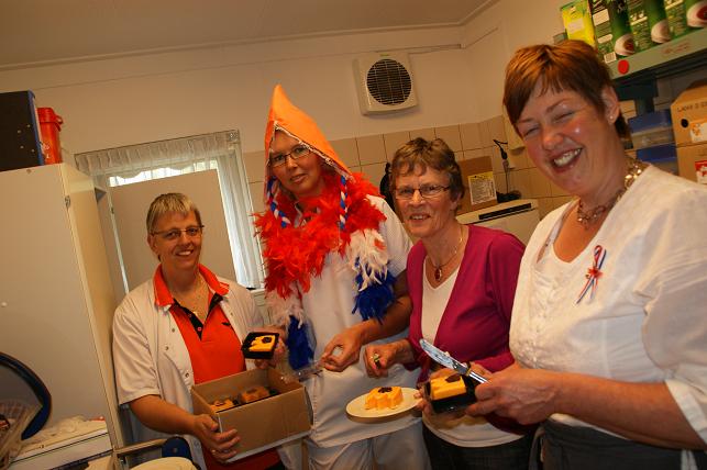 Personeel en vrijwilligers van de Lindescote zorgden voor een heerlijk oranje-feestmaal.