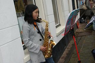 Op de vrijmarkt werd er druk gehandeld en muziek gespeeld.