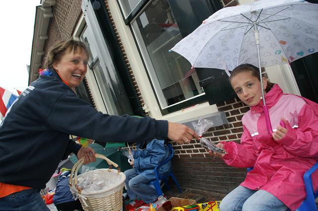 Het Oranjecomité deelde aan alle kinderen snoepjes uit.