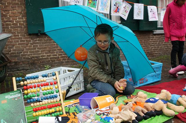 Af en toe begon het te regenen maar dat maakte voor deze verkopers niet uit, gewoon de verkooptent een beetje dichtritsen en dan blijven de spullen droog.