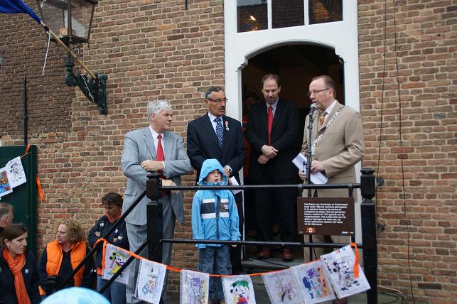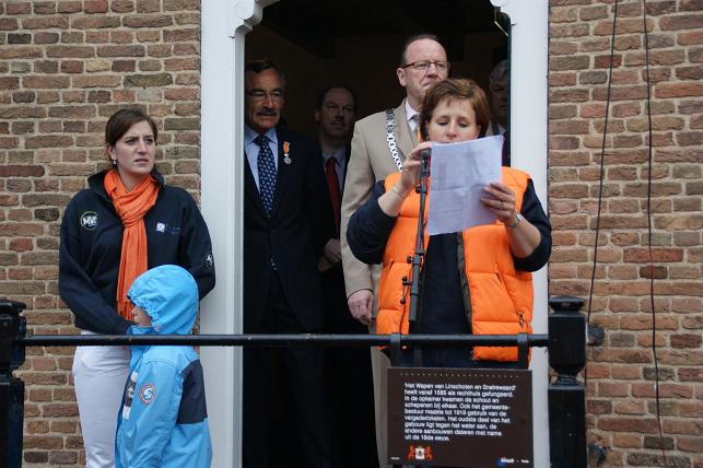 Een toespraak van Irene Lempers van het Oranjecomité Linschoten en burgemeester Jansen.