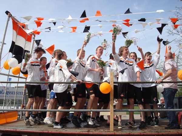 Geplaatst op:01-05-2010 Bijgewerkt op:01-05-2010 15:43 MSV B1 KampioenBron: Henk van der DoesHet B1 team van MSV’19 is vorige week zaterdag onder leiding van trainer Dick Rietveld kampioen geworden door met 6-3 te winnen van de directe concurrent NVC uit Naarden. Na afloop van deze wedstrijd was er eerst een feestelijke rondrit door Montfoort en daarna een gezellig feestje in de kantine van MSV'19.
