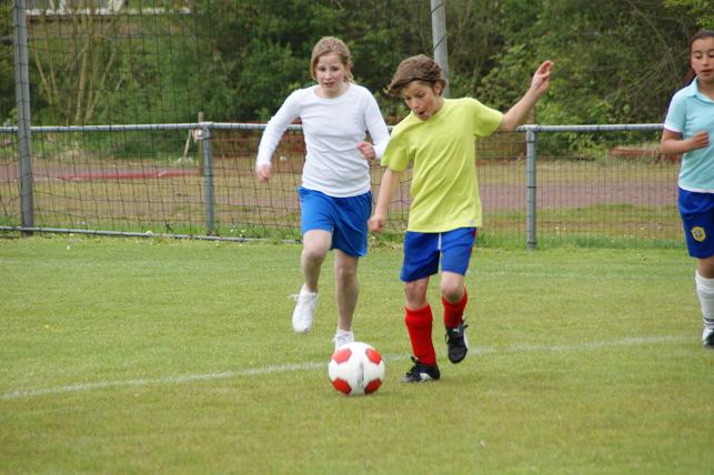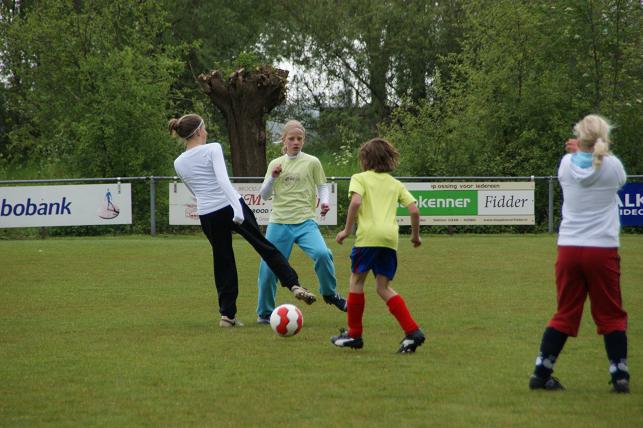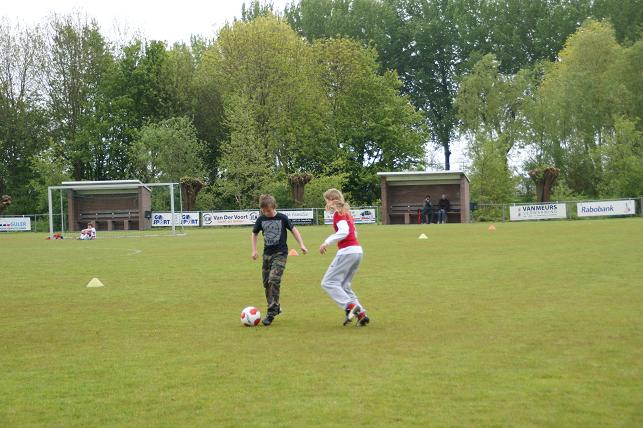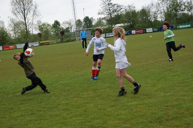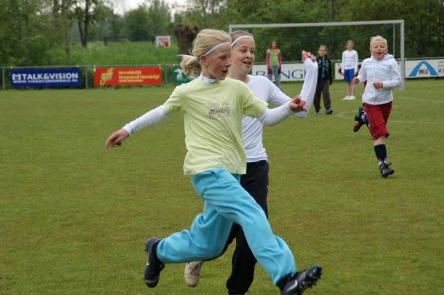 De basisschoolleerlingen uit verschillende groepen van de Timotheüsschool en de Prins Clausschool speelden met en tegen elkaar op het voetbalveld van VVL.