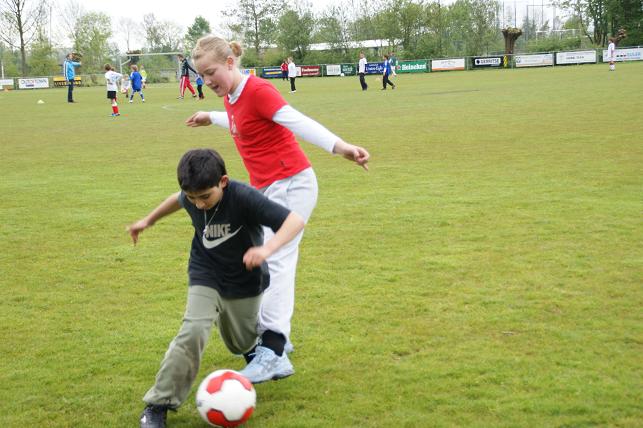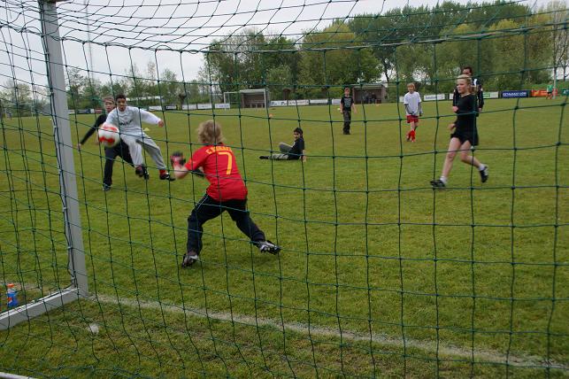 Aangemoedigd door familie en vrienden stortten de voetballers zich vol overgave op de bal.