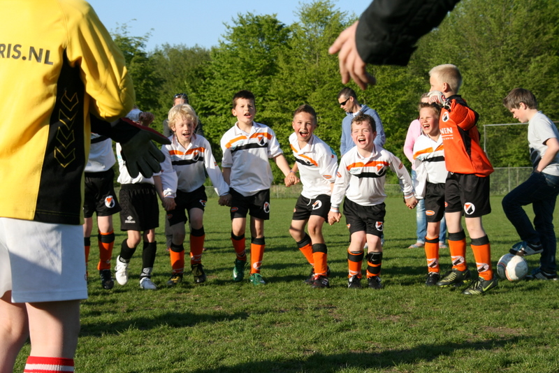 Het kampioenschap werd natuurlijk uitgebreid gevierd met het uitreiken van medailles en een echte beker onder luid getetter van heuse vuvuzela’s!