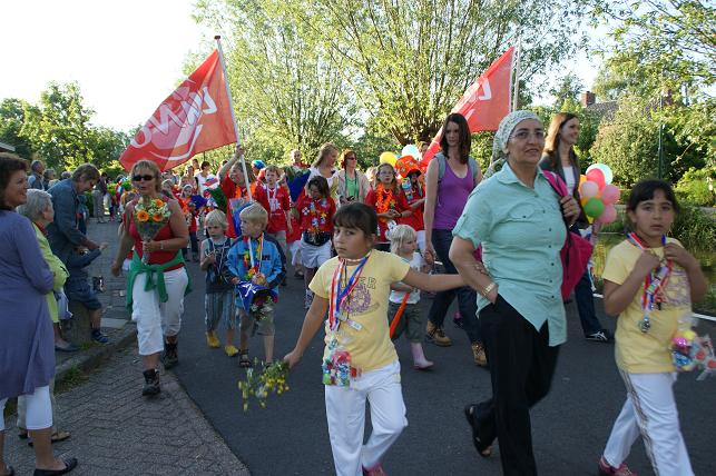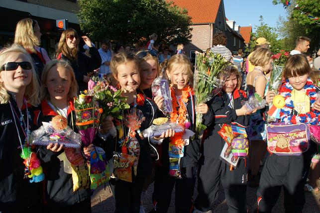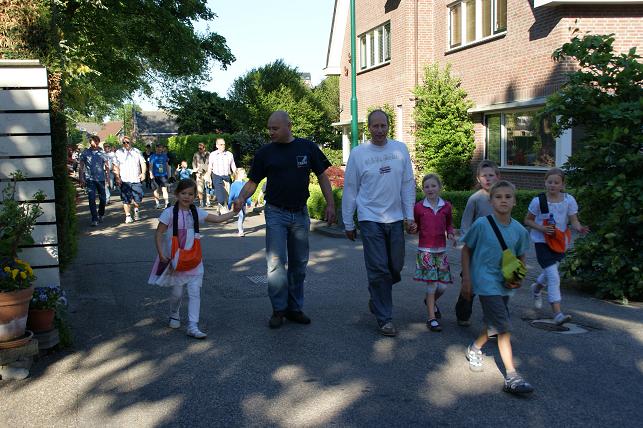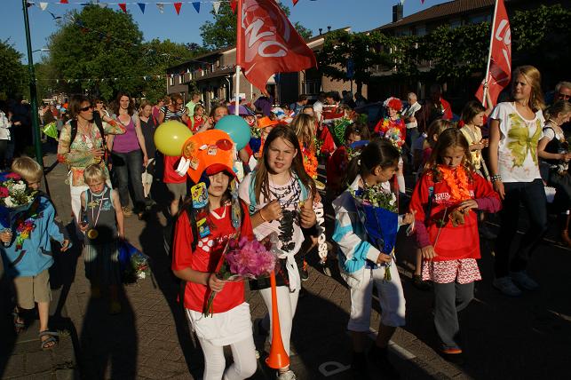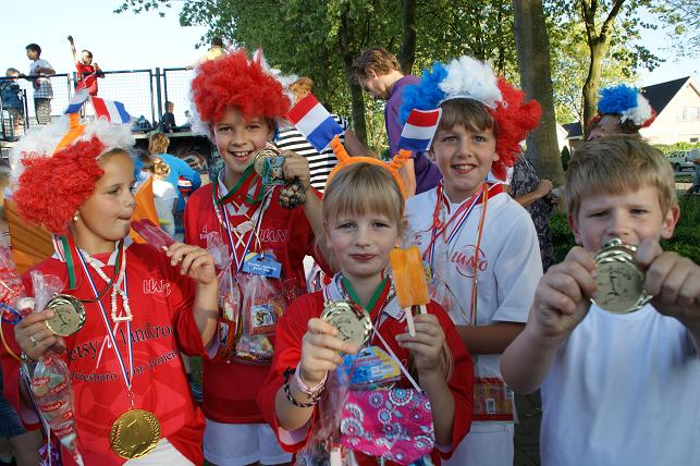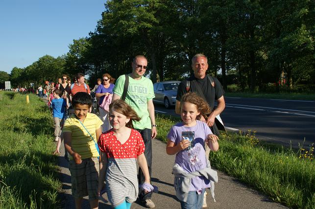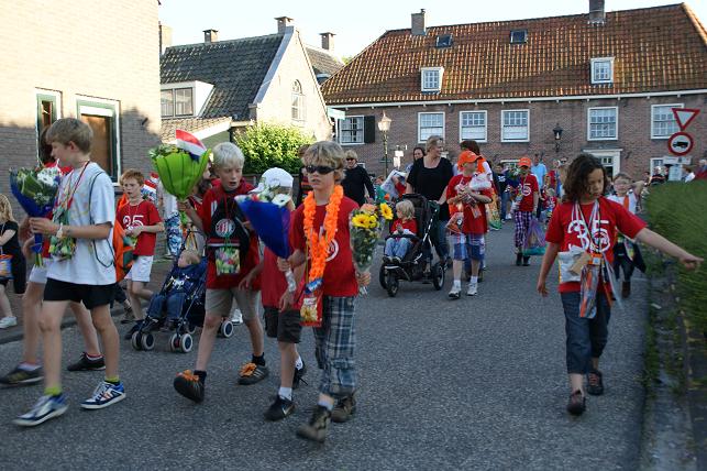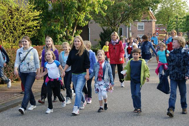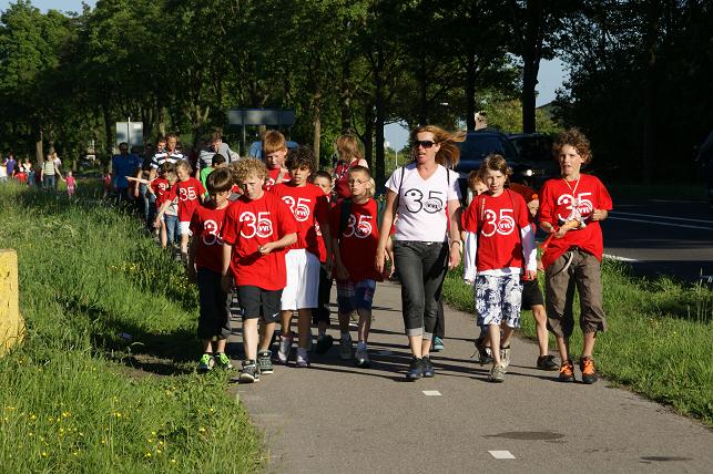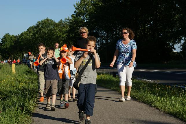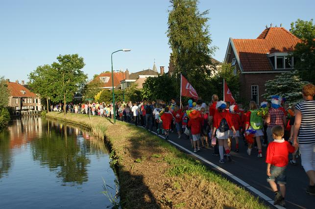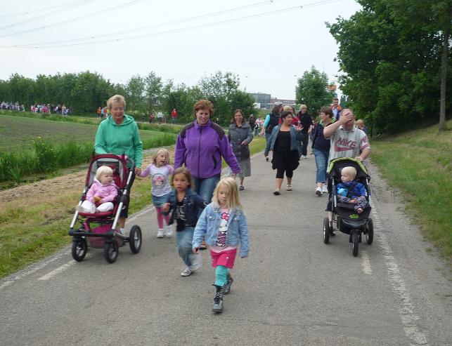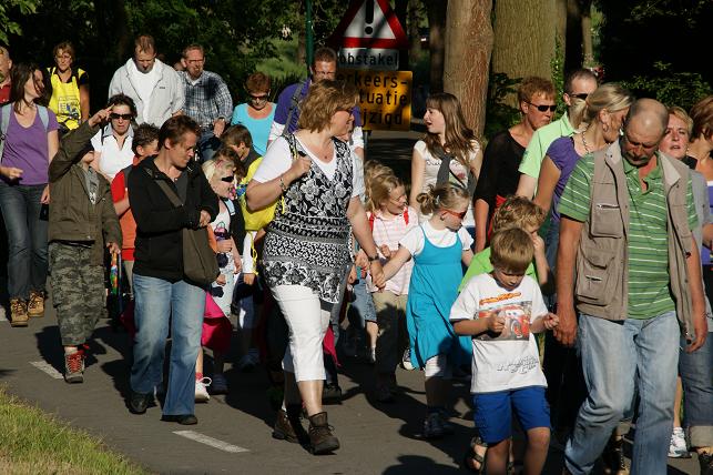 Geplaatst op:31-05-2010 Bijgewerkt op:04-06-2010 22:33 Avondvierdaagse van LinschotenBron: Saskia van den Brink, redactie RSMDe avondvierdaagse van Linschoten is maandag 31 mei van start gegaan. Deelnemers lopen een route van vijf of tien kilometer. Op de eerste avond liep de route door het Linschoterbos en via de Engherzandweg en de Dorpstraat weer terug naar De Vaart. Deelnemers aan de vijf kilometerroute.Korfbalvereniging Luno zingt er vrolijk op los. De tweede avond stond de Weideroute op het programma.Iedereen verzamelde zich weer bij De Vaart om te starten.Vervolgens vertrok de groep van de tien kilometer richting Montfoort, de groep van de vijf kilometer liep over het fietspad langs de M.A. Reinaldaweg op weg naar de Lage Kade. Een enthousiast rolstoelteam van het Rode Kruis afdeling Linschoten liep/rolde ook dit jaar natuurlijk weer mee! Halverwege de Lage Kade werd er gestempeld en kregen de deelnemers een lekkere versnapering van de bakker.Vele deelnemers op de Lage Kade. (Bovenstaande foto is gemaakt door Janneke Severs) Op de derde wandelavond hadden de lopers ook weer prachtig weer. De route (Rivierenroute) liep onder meer over de Noord Linschoterdijk en de Schapenlaan.Op de Noord Linschoterdijk kregen de deelnemers lekkere spekkoek aangeboden.Zij beleefden veel plezier aan de avondvierdaagse. De laatste avond, dus iedereen was mooi uitgedost. Verenigingen waren goed herkenbaar, zoals V.V. Linschoten op de foto hierboven. Zij hebben samen met hun hond de avondvierdaagse gelopen. De meer dan 300 deelnemers hadden alle dagen prachtig wandelweer. De avondvierdaagse werd afgesloten met het defilé. Onder muzikale begeleiding van muziekvereniging Linfano liepen de honderden deelnemers gezamenlijk naar De Vaart om daar hun prachtige medaille in ontvangst te nemen. De laatste meters op de schouders meeliften. Het was weer een geslaagde avondvierdaagse! Mede dankzij de vele sponsors en vrijwilligers. Vrijwilligers zijn altijd welkom! Kijk voor meer informatie over de Vereniging Avondvierdaagse Linschoten op: www.a4dlinschoten.nl