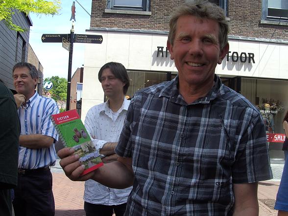 Ook kreeg hij een fietsrouteboekje overhandigd. Dus mocht hij naast al zijn biologische werkzaamheden nog wat tijd overhouden, dan kan hij lekker met zijn familie gaan 'fietsen door de verdwenen rivieren in de Utrechtse Waarden'.