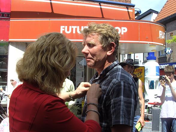 Linschotenaar Dirk Kool kreeg ook een lintje opgespeld, hij is een actieve biologische boer en werd voor zijn vele werkzaamheden in het zonnetje gezet.
