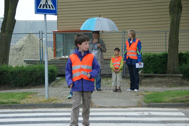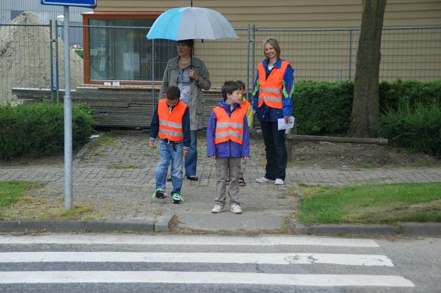 Na een korte uitleg op school gingen zij in kleine groepjes op pad. Tijdens deze praktijkles werd er gelet op het gedrag bij het oversteken.