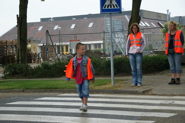 Er werd geoefend op de Laan van Rapijnen, op een gedeelte met en zonder zebrapad. Veel kinderen deden hun best en keken goed uit bij het oversteken.