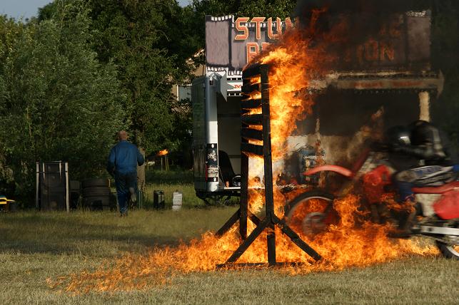 Stuntmensen maakten zich klaar voor een spectaculaire show.