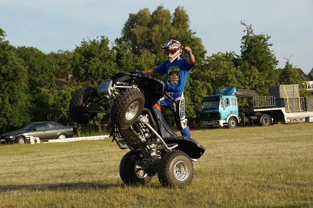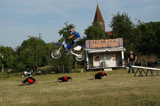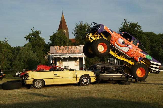 Bezoekers beleefden bloedstollende momenten door de vele geweldige stunts uitgevoerd met auto’s, motoren, quads en monstertrucks. Zonder enige moeite reden de stuntmannen met de auto’s op twee wielen voorbij, en met o.a. een motor werd er door een muur van vlammen gereden.