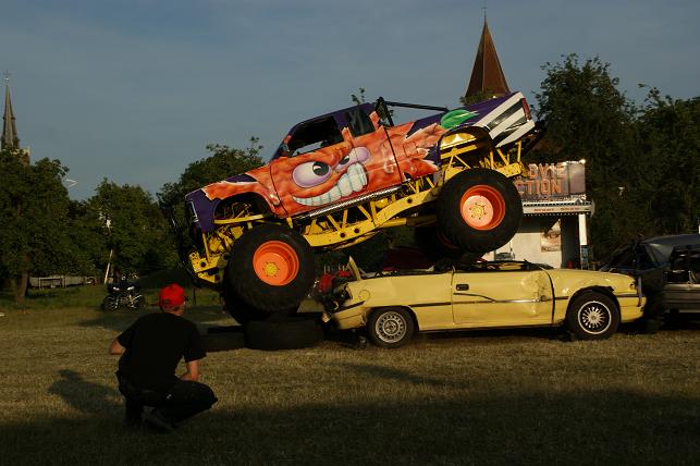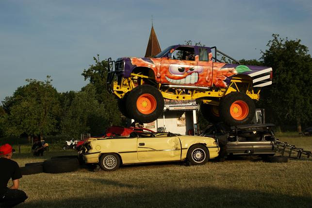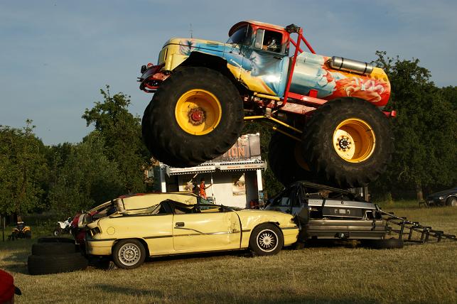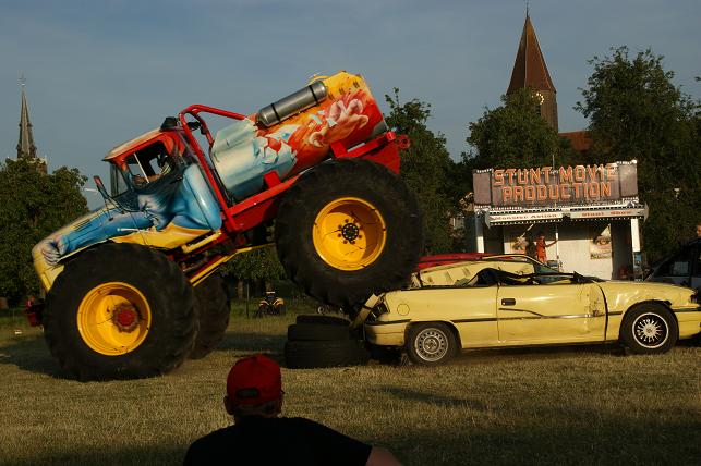 Ronkende motoren en veel pk’s op dinsdag 22 juni op de Doeldijk in Montfoort. De Stunt Movie Production verzorgde een spectaculaire Monster Action Show.