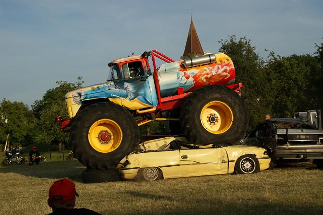 De avond werd afgesloten met drie gigantische monstertrucks die alles verpletterden wat er onder hun twee meter hoge wielen terecht kwam.
