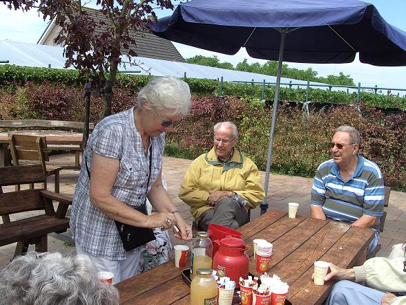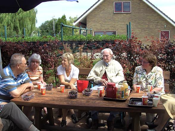 Daar stond de koffie en thee klaar, maar ook eigengemaakte appelsap en heerlijke kersen om van te smullen.
