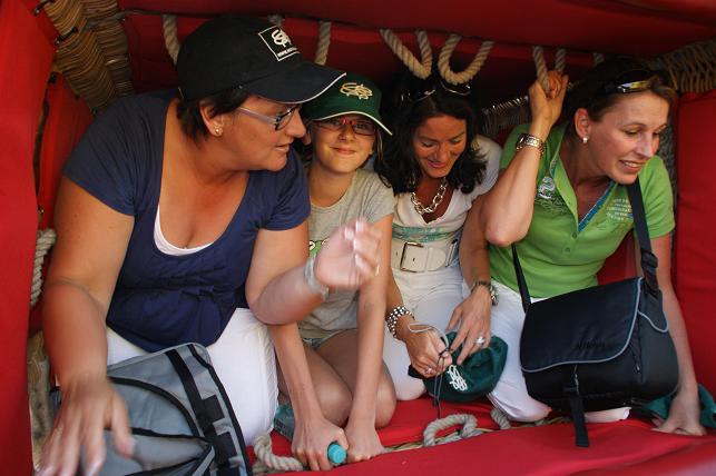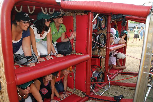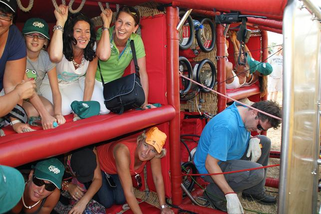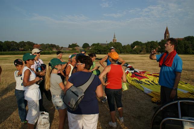 De passagiers krijgen uitleg over de ballonvaart.