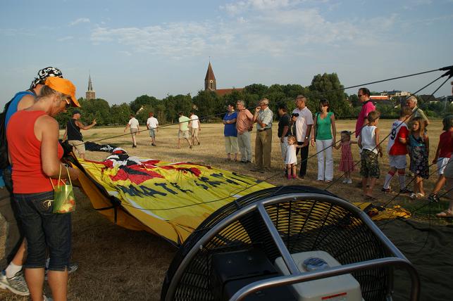 De voorbereiding van de ballonvlucht trok veel bekijks.