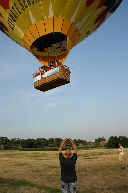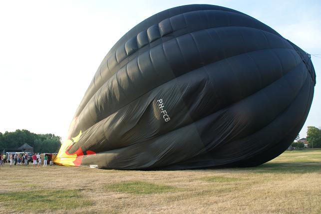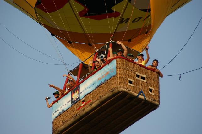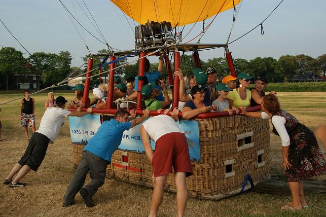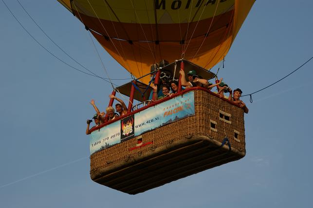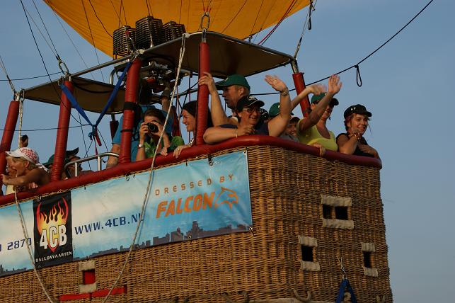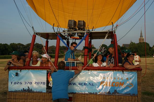 Het was een gevaarte van zo'n 50 meter hoog en een mand waar zo'n twintig passagiers in plaats namen. Veel van deze passagiers hadden tijdens de afgelopen jaarmarkt bij Radio Stad Montfoort de ballonvaart gewonnen.