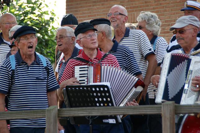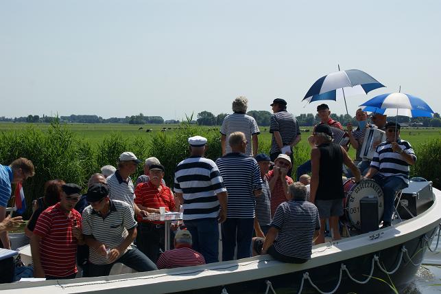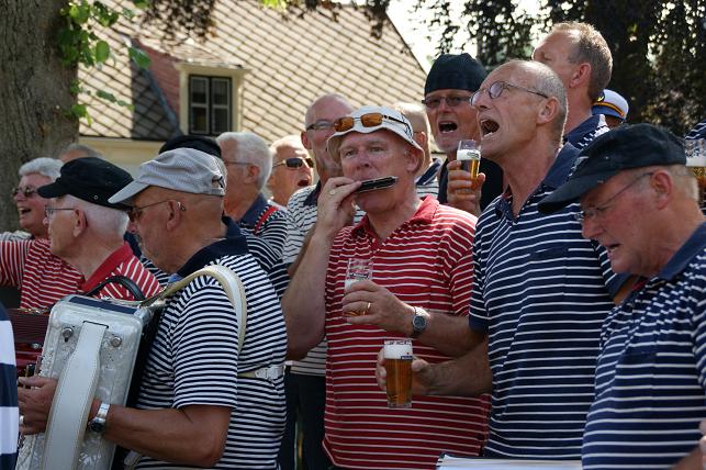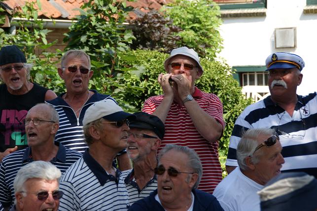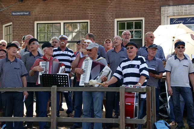 Onderweg brachten zij onder begeleiding van hun muzikanten zeemansliederen ten gehore.