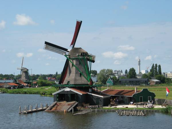 De schipper vertelde in geuren en kleuren over de schilderachtige oude fabrieken en molens van de Zaanstreek.