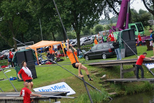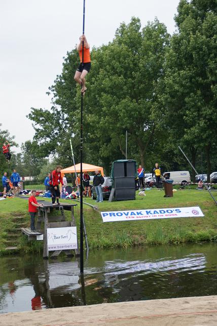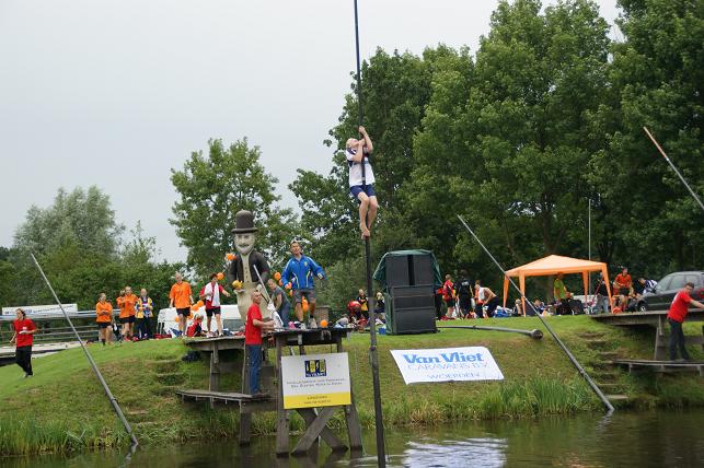Zowel Hollandse als Friese polsstokverspringers gingen de strijd met elkaar aan.