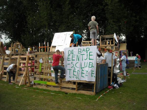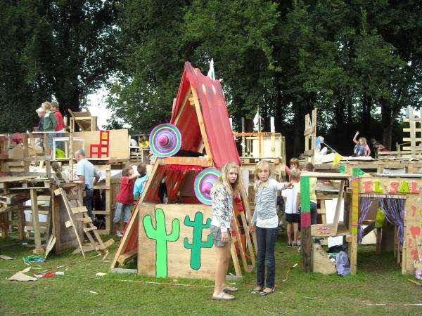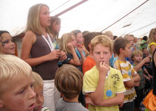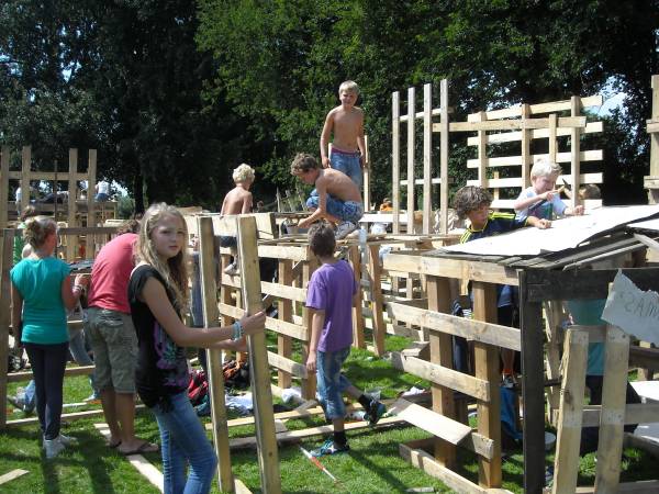 In het park van Montfoort zijn deze week weer honderden kinderen actief bij de “VOM.” Er wordt o.a. getimmerd en geschilderd, gekleid geplakt en geknipt. Broodjes worden gebakken, kinderen worden onherkenbaar geschminkt, en maken salto’s op het springkussen.