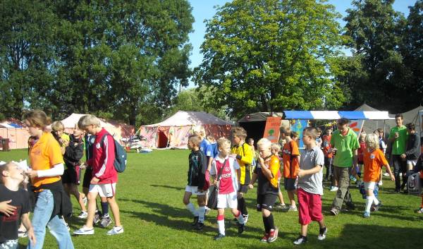 De vrijwilligers en de eerste hulp zijn druk bezig om alles in goede banen te leiden. Ouders, oma’s en opa’s houden een oogje in het zeil.