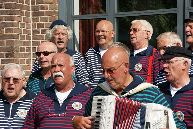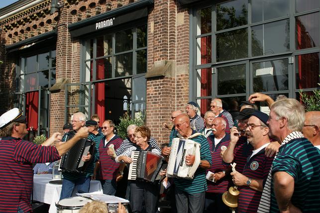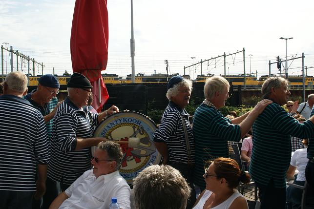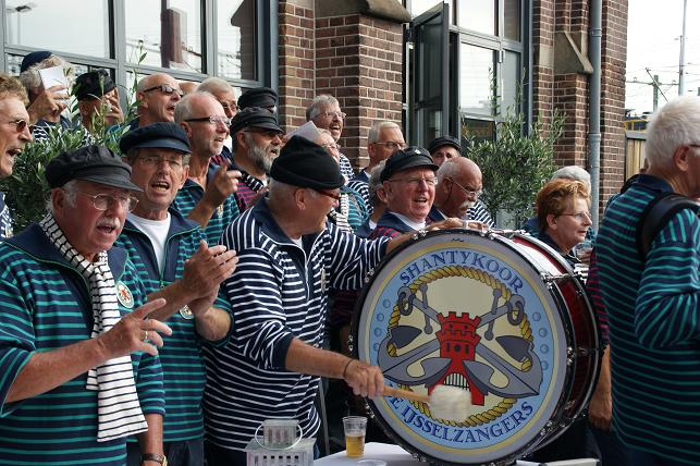 Op uitnodiging van de (oud-) Linschotense Nienke de Jonge - werkzaam in restaurant Panama, in het hart van Sail - kwamen De IJsselzangers na hun rondvaart de terrasgangers vermaken.