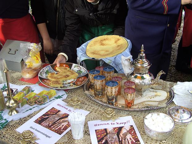 Er waren diverse kraampjes voor de inwendige mens met o.a. allerlei drankjes, heerlijke Marokkaanse hapjes en thee. En broodjes hamburgers, waaronder ook halal hamburgers.