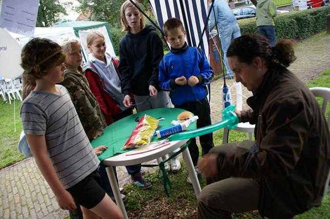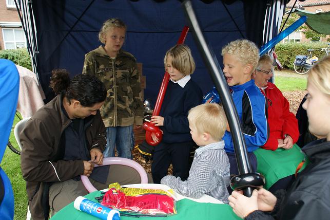 De jongste feestgangers vermaakten zich op het springluchtkussen en waren onder de indruk van de ballonnenkunstenaar.