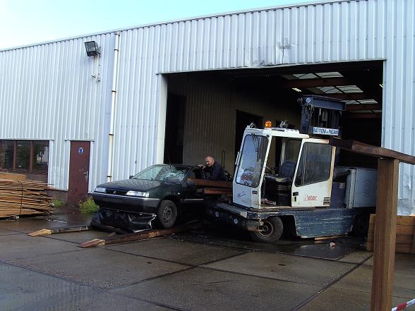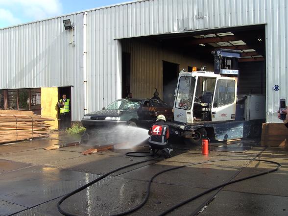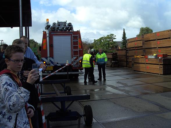 Op het terrein van Houthandel de Goederen werd een ongeval in scène gezet.
