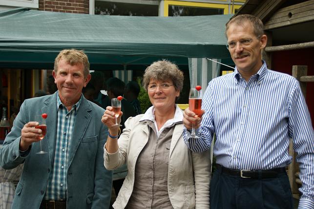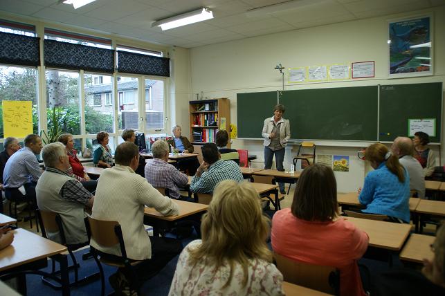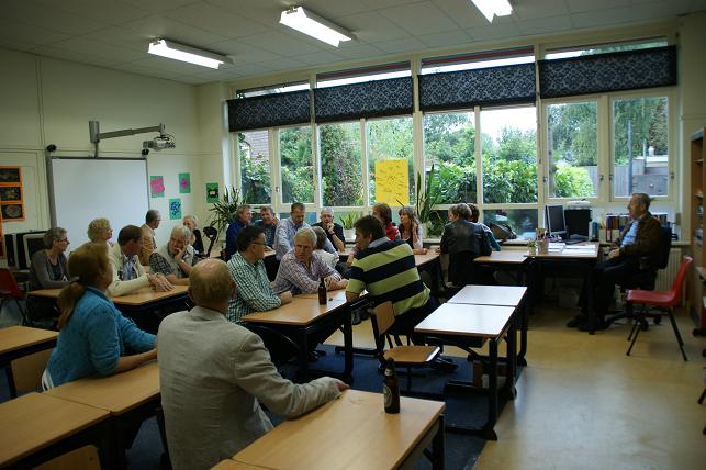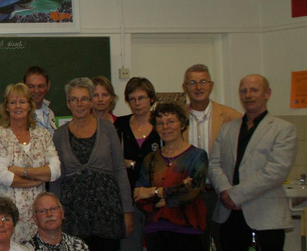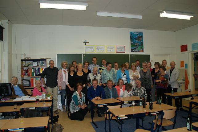 Geplaatst op:02-10-2010 Bijgewerkt op:02-10-2010 20:39 Reünie op Timotheüsschool in LinschotenBron: Saskia van den Brink, redactie RSMZaterdag 2 oktober vond er op de Timotheüsschool in Linschoten een reünie plaats, het betrof de 6e klas van het jaar 1972. Het plan bestond al langer om een reünie te houden op de oude school, en het zou leuk zijn als iedereen dan vijftig jaar oud zou zijn. Eén persoon is echter nog geen vijftig jaar, maar daar kon niet op gewacht worden omdat de Timotheüsschool binnenkort haar deuren sluit in verband met de Brede School, dus moest de reünie toch snel plaatsvinden. Daarom werd half augustus het plan in werking gesteld en gingen de drie organisatoren en oud-klasgenoten Dirk Kool, Wil Zwanenburg en Jaap Oudshoorn (op bovenstaande foto) aan de slag om hun oud-klasgenoten en docenten terug te vinden. Via ouders, vrienden en internet werd er gespeurd om de klas van zevenentwintig leerlingen weer bij elkaar te brengen. Het was een heel werk, maar in één week hadden zij toch iedereen kunnen vinden. Op een enkeling na kwam de hele klas naar de reünie. Ook oud-schoolhoofd/meester Verhoeven, meester Peters (5e klas), en juffrouw Hoogersteder (1e klas) waren aanwezig op de reünie. Na een korte kennismaking namen de genodigden plaats in de klas waar vervolgens oude herinneringen werden opgehaald. Deze dag werd beëindigd met een barbecue op het schoolplein aan de Liefhovendijk.