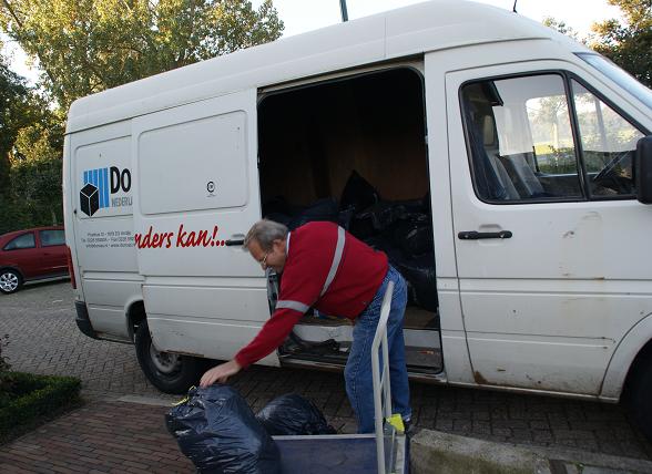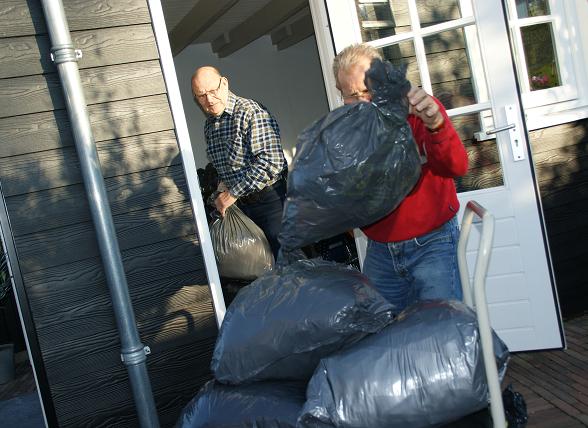 Maandagochtend 11 oktober werden de zakken opgehaald door Dorcas. De twee heren van Dorcas hadden hun handen vol aan de vele kledingzakken. Zij vertrokken even later met een goed gevuld busje.