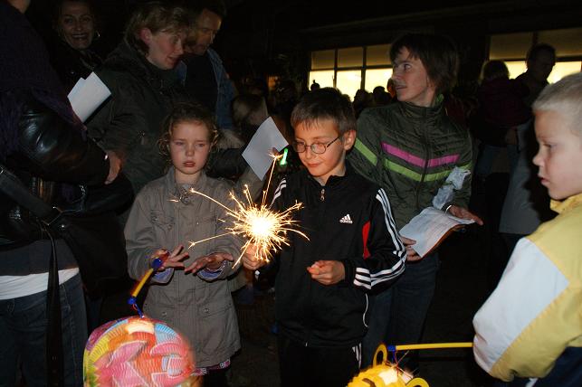 Na een toespraak en het zingen van een lied over de verhuizing van de school werden de lampionnen en sterretjes aangestoken.