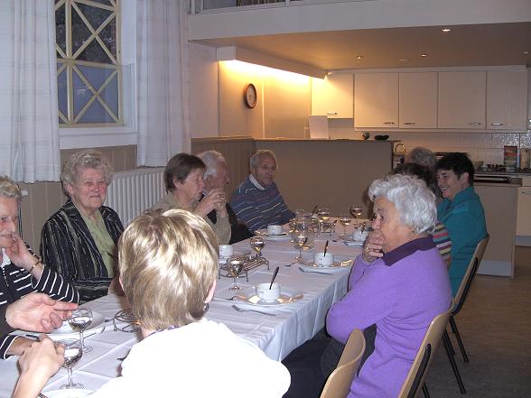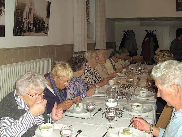 Om 18:00 uur stond er een heerlijke maaltijd klaar met op het menu een gebonden kippensoep, jachtschotel met aardappelpuree en spruitjes en als toetje stoofperen.