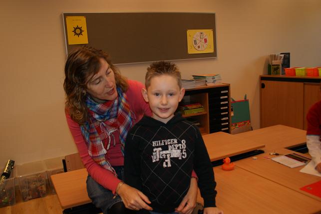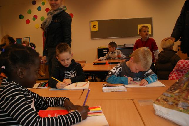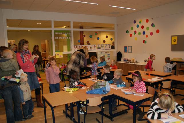 Samen met de ouders en opa's en oma's werd de nieuwe klas bekeken.