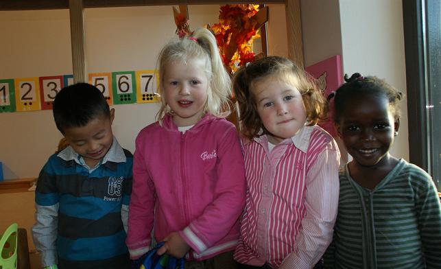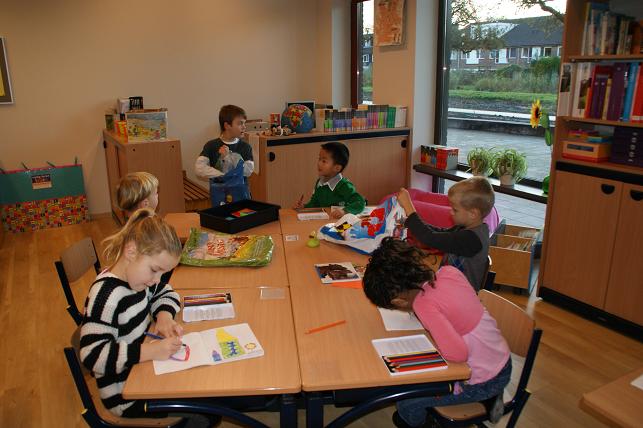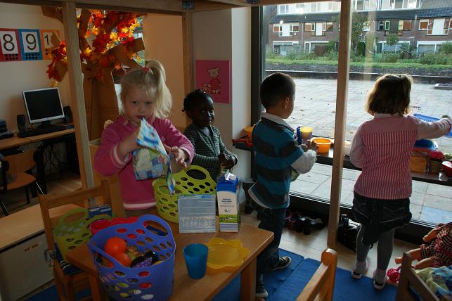 In de kleuterklassen zijn mooie speelhoeken ingericht waar direct gebruik van werd gemaakt.