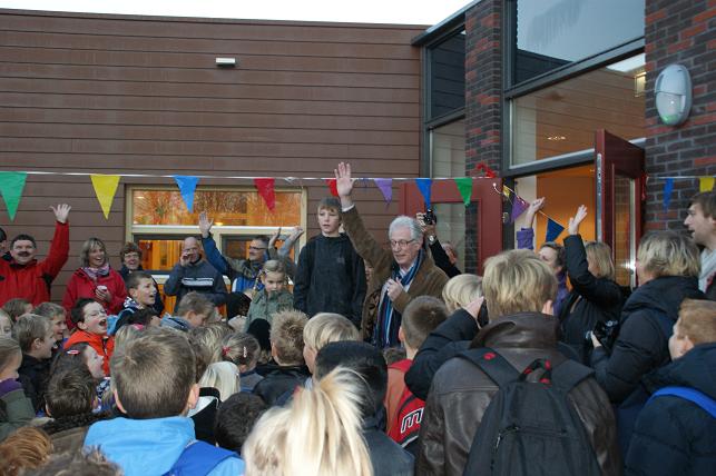 Na een korte toespraak bij de ingang bij de beide scholen werden er lintjes doorgeknipt en mochten de leerlingen naar binnen.