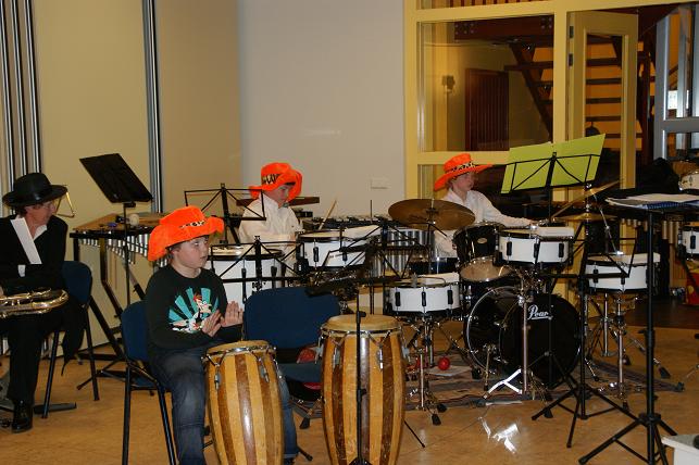 Er werden optredens verzorgd door het fanfareorkest, amv slagwerk, slagwerkleerlingen, de slagwerkgroep en de malletband. Zij speelden filmmuziek en titelsongs van onder andere ‘The Lord of the Rings’, TinTin (Kuifje), James Bond en Mission Impossible. Ook passeerden er swingende sambaklanken waaronder Pippi Langkous in sambastijl. Het eerste optreden in de nieuwe zaal in ‘De Brede Vaart’ is goed bevallen.