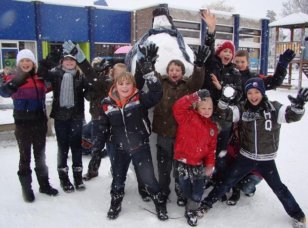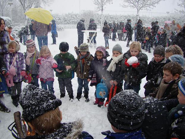 Het was vooral ook leuk dat het ging sneeuwen en de kinderen vermaakten zich dan ook goed met het maken van enorme sneeuwpoppen. Dit alles was een initiatief van een aantal moeders. Heel erg bedankt hiervoor, enne...volgend jaar weer?